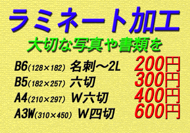 原版保護する意味で、ラミネート加工は当店で出力したものに限ります